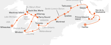 Während der Indian Summer die Wälder an den Ufern in ein Meer aus Farben taucht, trägt Sie MS HAMBURG den gewaltigen St.-Lorenz-Strom entlang. In Kingston entern Sie den Ontariosee. Sie passieren den Wellandkanal bis sich der Eriesee Ihren Blicken öffnet. Sehen Sie dort drüben? Das sind die USA! Auf den Spuren von Henry Ford durch Detroit streifen, Cleveland erleben, das Harley-Davidson Museum besuchen, die legendäre Gangsterstadt Chicago entdecken – das Land der unbegrenzten Möglichkeiten hält, was es verspricht. Und das Tosen der Niagarafälle darf man sich einfach nicht entgehen lassen!