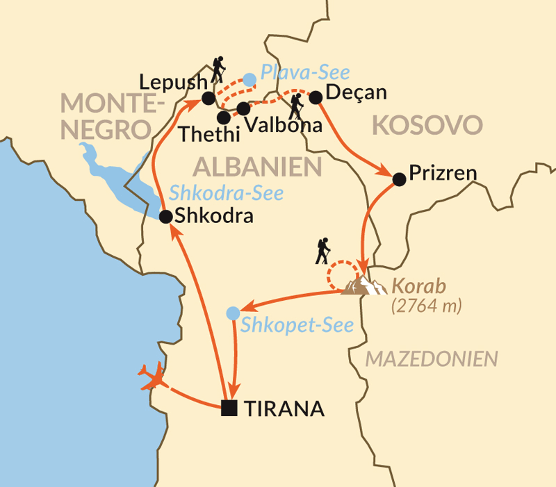 Die Albanischen Alpen (Teil des Dinarischen Gebirges) sind ein Traumziel für jeden passionierten Wanderer. Auf dieser Reise durchstreifen Sie eine mystische Bergwelt von seltener Schönheit und unberührter Natur im Grenzgebiet von Albanien, Montenegro und Kosovo – ein Teil des Fernwanderweges Via Dinarica in den Dinarischen Alpen.