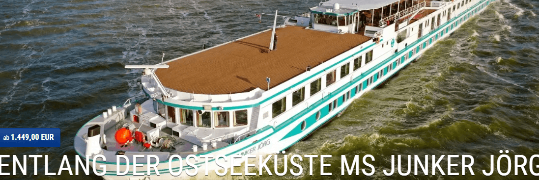 Mit einem Flussschiff auf der Ostsee? In unserem Fall ein Vorteil für jene, die die Vorzüge dieser Region lieben. Kurze Fahrzeiten üppige Aufenthaltszeiten und gleich 6 Ausflüge im Preis enthalten. MS Junker Jörg hat seinen Namen aus der Zeit als Martin Luther sich auf der Wartburg versteckte. Wir folgen diese Tatsache, weil wir oft versteckte Landschaften und schöne Plätze anauf Rügen, Usedom oder am Oderhaff erschließ wollen.